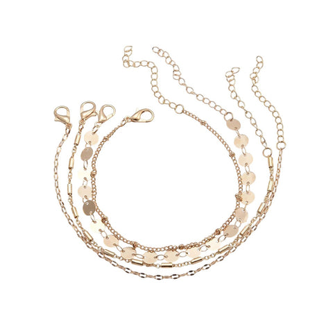 Quatre bracelets en un. Notre bracelet est une juxtaposition de fines et élégantes chaînes. La couleur dorée donnera ce plus d'éclat à votre poignet. Parfait pour la journée et a associé avec d'autres pièces pour les soirées !